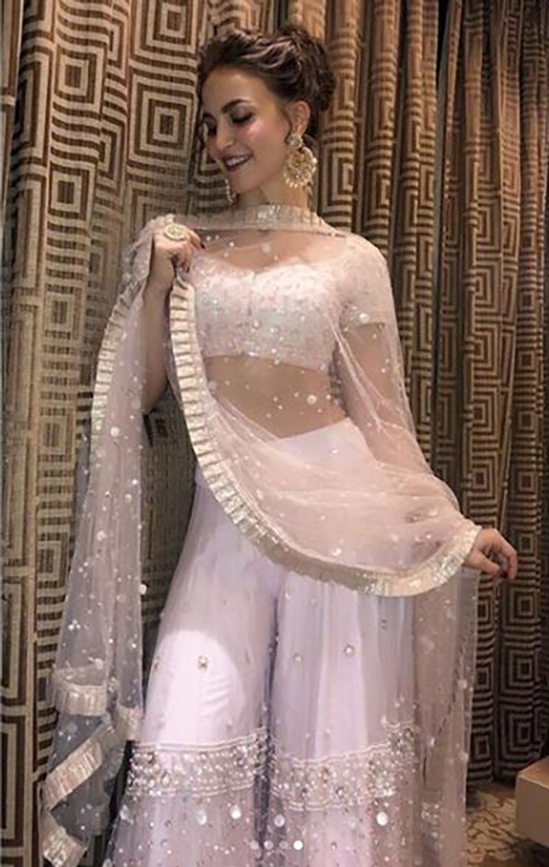 एली ने हलके गुलाबी रंग का शूट पहना रखा है जो कि उनपर खूब जंच रहा है।