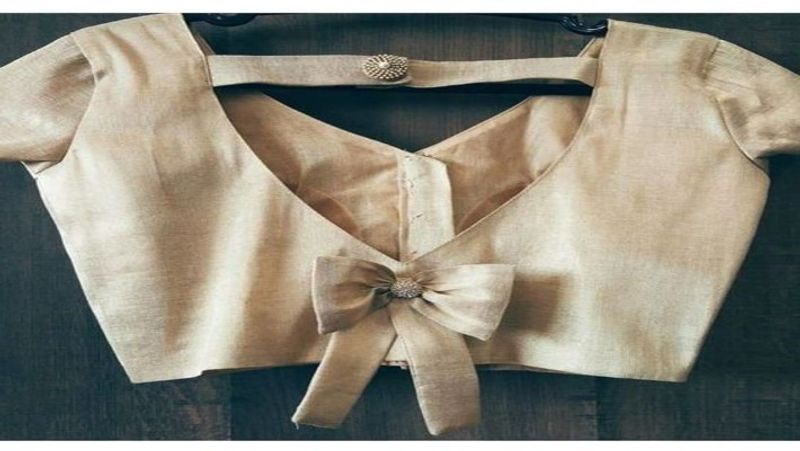 बो बैकलेस गोल्डन ब्लाउज (Bow Backless Blouse