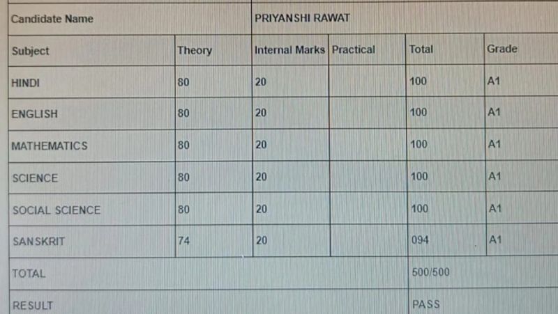 पिथौरागढ़ की रहने वाली प्रयांशी रावत जिले के गंगोलीहाट के एक विद्यालय की छात्रा है। रिटायर्ड आर्मी मैन पिता और कुशल गृहणी मां की संतान प्रियांशी रावत ने इस बार 10 परीक्षा में 100 प्रतिशत अंक हासिल करके हिस्ट्री क्रिएट कर दी है। उसे 500 के पूर्णांक में 500 नंबर प्राप्त हुए हैं। यानि हर सब्जेक्ट में उसे 100 में 100 नंबर अर्थात शत प्रतिशत अंक प्राप्त हुए हैं। इंग्लिश, हिंदी, मैथ, साइंस, सोशल साइंस में उसने शत प्रतिशत नंबर हासिल करके खुद को आलराउंडर साबित कर दिया है यानि हर सब्जेक्ट में पारंगत। प्रियांशी की मार्कशीट सोशल मीडिया पर वायरल हो रही है।