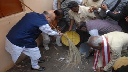 अमित शाह ने इस मौके पर स्वच्छता ही सेवा अभियान में भी हिस्सा लिया।