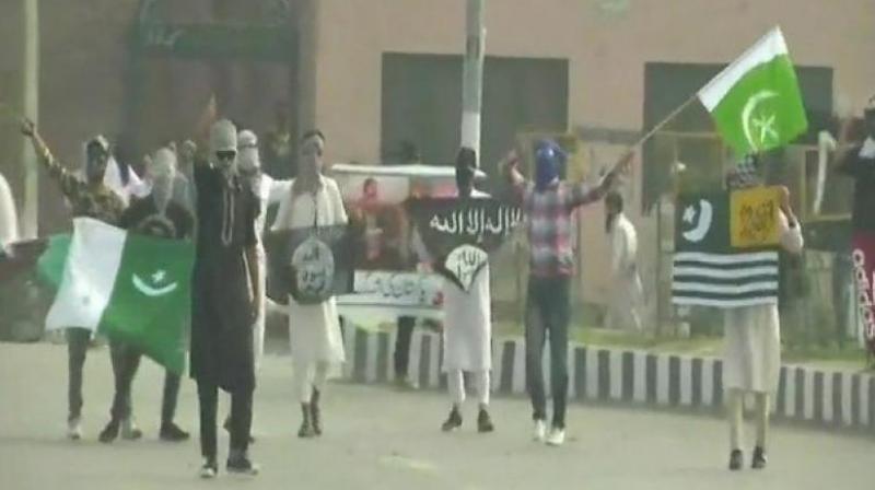 जम्मू कश्मीर के श्रीनगर में उस वक्त भारी हिंसा भड़क उठी जब पत्थरबाजों ने पाकिस्तान और आईएसआईएस के झंडे लहराए। प्रदर्शनकारी ईद की नमाज के बाद श्रीनगर के ईदगाह मैदान में तैनात पुलिसकर्मियों से भिड़ गए। इस दौरान देश विरोधी नारे लगाए गए। भीड़ को तितर-बितर करने का प्रयास कर रहे सुरक्षाबलों पर पत्थर भी बरसाए गए। हालात बिगड़ते देख सुरक्षाबलों को आंसू गैस के गोले दागने पड़े। विरोध में पत्थरबाजों ने पाकिस्तान और आईएसआईएस के झंडे भी लहराए। अनंतनाग के जंगलात मंडी, सोपोर में जामिया मस्जिद के पास भी इस तरह की घटनाएं हुई हैं।
