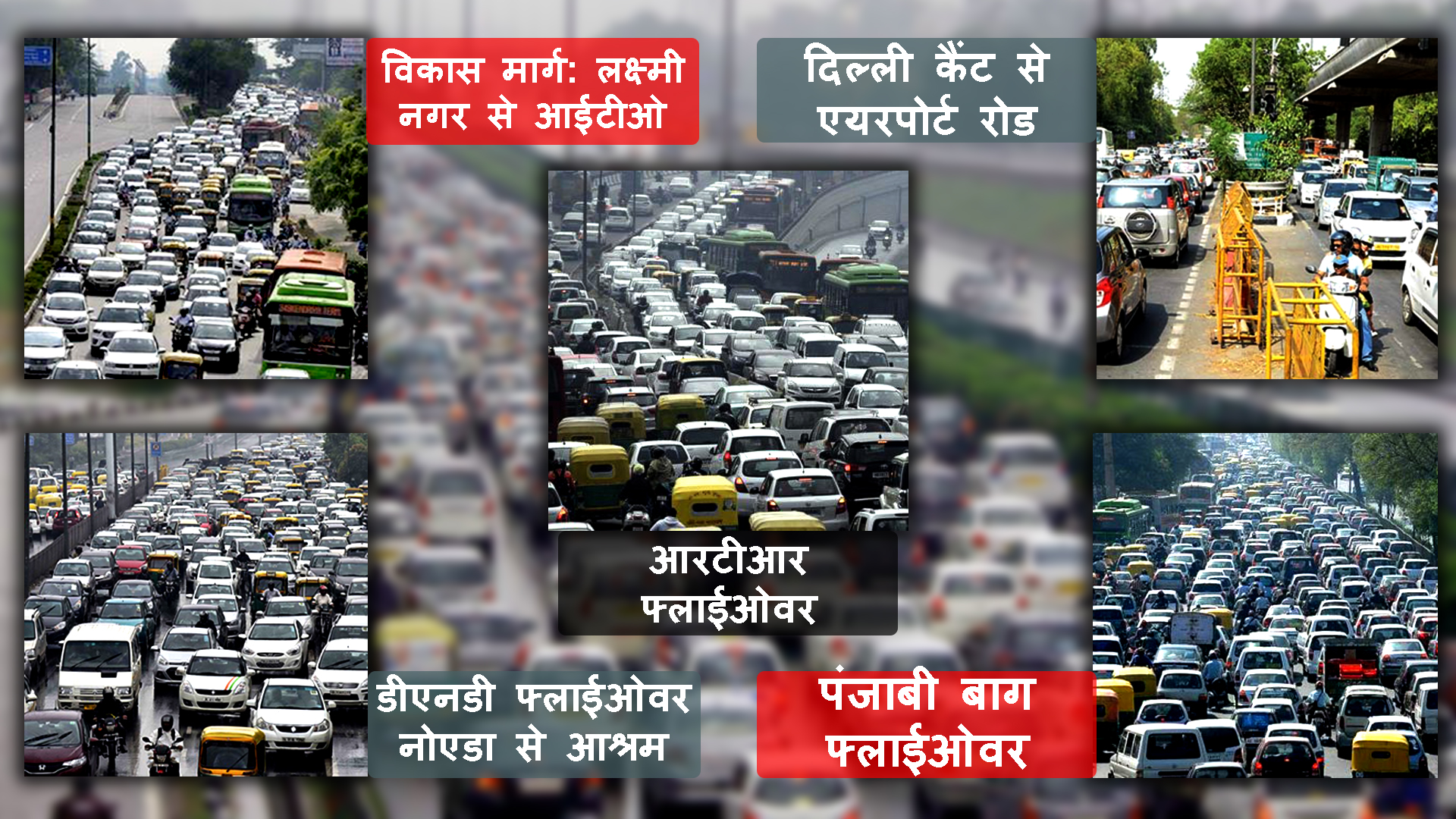ट्रैफिक पुलिस के मुताबिक, आरटीआर फ्लाईओवर, एयरपोर्ट की ओर जाने वाले आरटीआर टी प्वाइंट, महिपालपुर मार्केट (दोनों तरफ), वसंत वैली स्कूल, अंधेरिया मोड़ से वसंत कुंज, पंजाबी बाग फ्लाईओवर, जखीरा फ्लाईओवर आदि जगहों पर जल भराव के कारण ट्रैफिक जाम है।