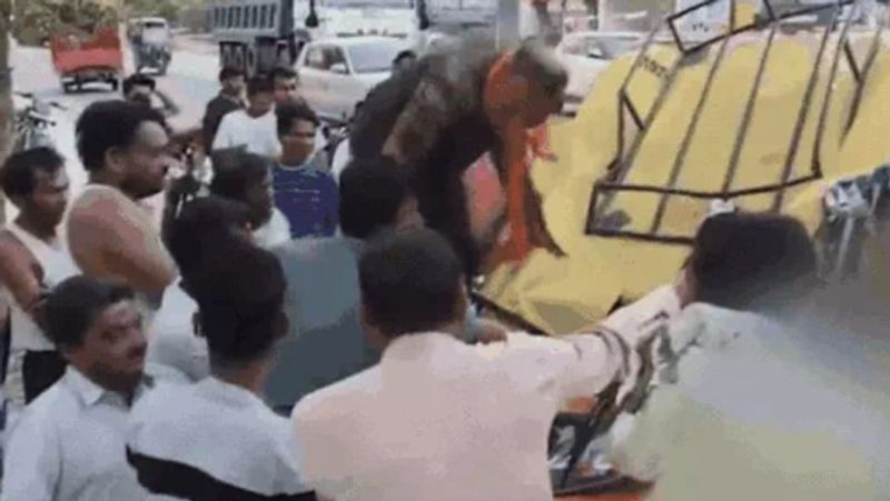 ऑटो में फंसे लोगों को निकालने के लिए मंगवाना पड़ा क्रेन