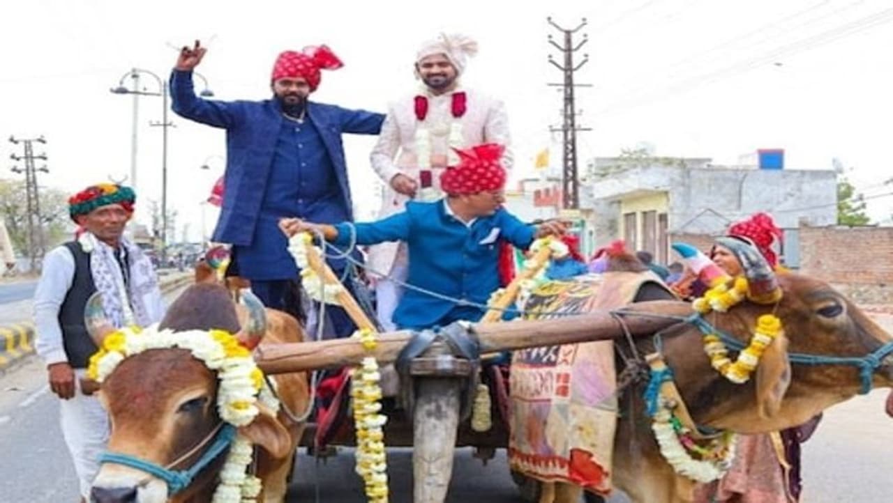 दरअसल यह शादी थी भीलवाड़ा के पथिक नगर के अजय की। अजय की बारात जब निकली तो लोग हैरान थे क्योंकि अजय की बारात में गाड़ी नहीं बल्कि बैलगाड़ी थी। अब जब शादी की तस्वीर वायरल होने लगी है तो लोग दूल्हे की तारीफ करते नहीं थकते। इस अनोखी शादी की चर्चा चारों तरफ है लेकिन बैलगाड़ी से बारात ले जाने के पीछे एक बड़ी वजह है।