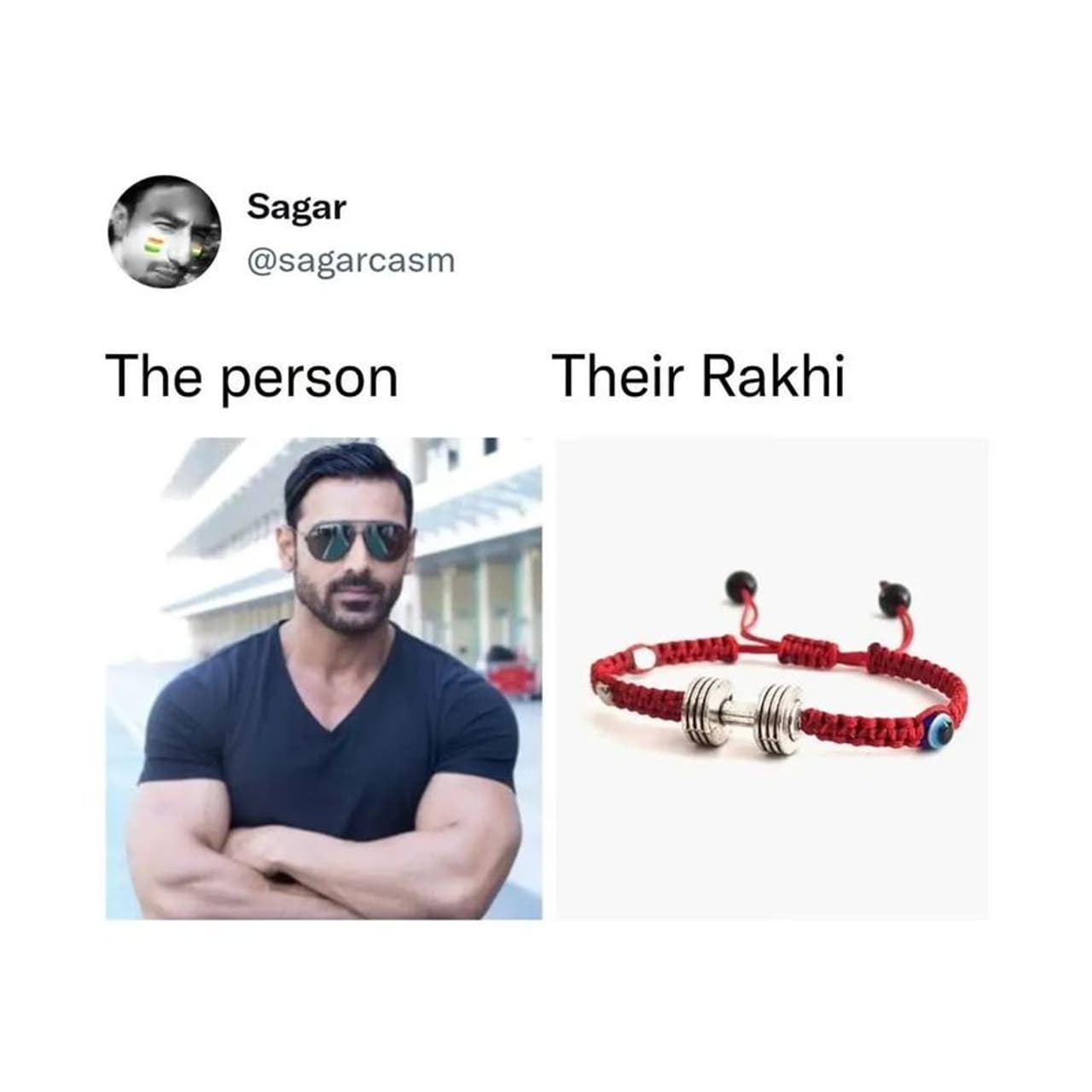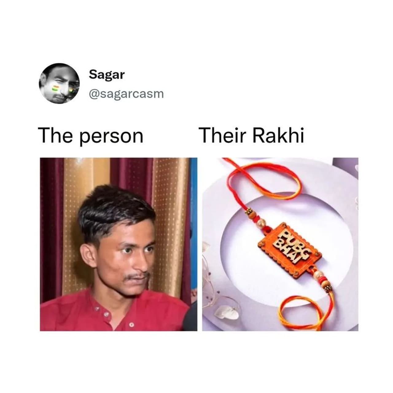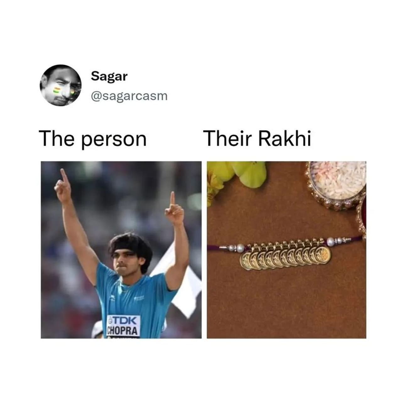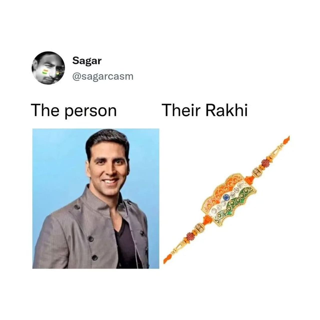 वायरल डेस्क। देशभर में रक्षाबंधन (raksha bandhan 2023) की धूम है। घर से लेकर सोशल मीडिया तक लोग भाई-बहन के पर्व की बधाई दे रहे हैं। इसी बीच इंटरनेट पर राखी से जुड़े कई मीम भी वायरल हो रहे हैं। भाई-बहन को क्या गिफ्ट दें, बहन कैसे रक्षाबंधन पर जेब खाली कर देती हैं। ऐसे कई मीम आपको हर सोशल मीडिया प्लेटफॉर्म में मिल जाएंगे। हालांकि इस वक्त एक मीम वायरल है जिसमें ये दिखाया गया है कि कौन सी हस्ती को उनके पेशे के हिसाब से राखी बांधनी चाहिए।