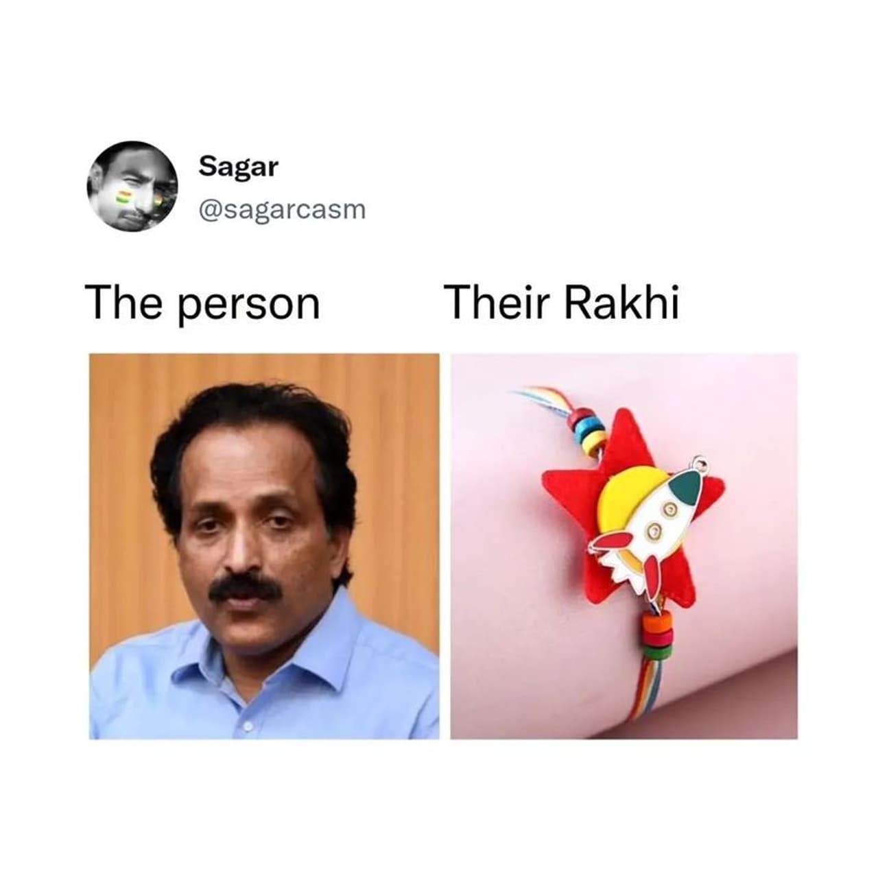 चंद्रयान-3 की सफलता में योगदान देने वाले और ISRO चीफ सोमनाथ के लिए स्पेसक्राफ्ट की राखी दिखाई गई है।