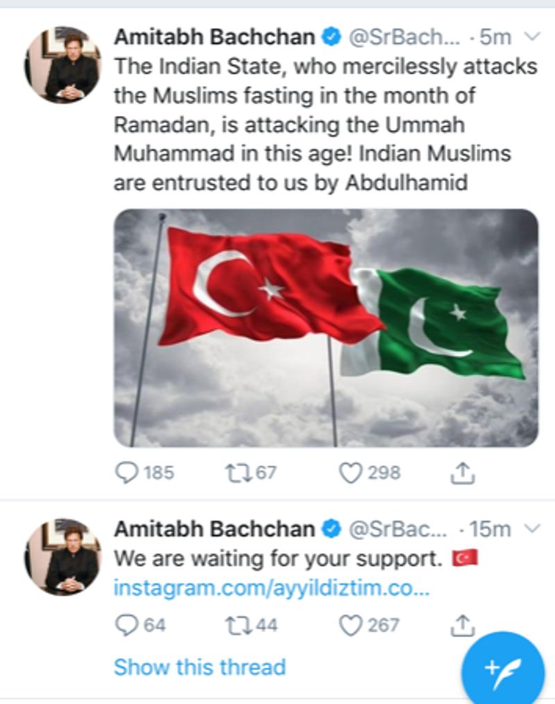 लेकिन आपको बता दें बिग बी का कल रात 11:30 बजे के करीब ट्विटर हैंडल हैक हो गया था। अकाउंट हैक करने वालों ने खुद को Ayyıldız Tim Turkish Cyber Army बताया। तुर्की हैकर्स ने अमिताभ बच्चन के ट्विटर हैंडल पर अमिताभ के फोटो को हटाकर पाकिस्तान के प्रधानमंत्री इमरान खान का फोटो लगा दिया गया। इसके साथ ही हैकर्स ने ट्वीट में 'Love Pakistan' भी लिखा।