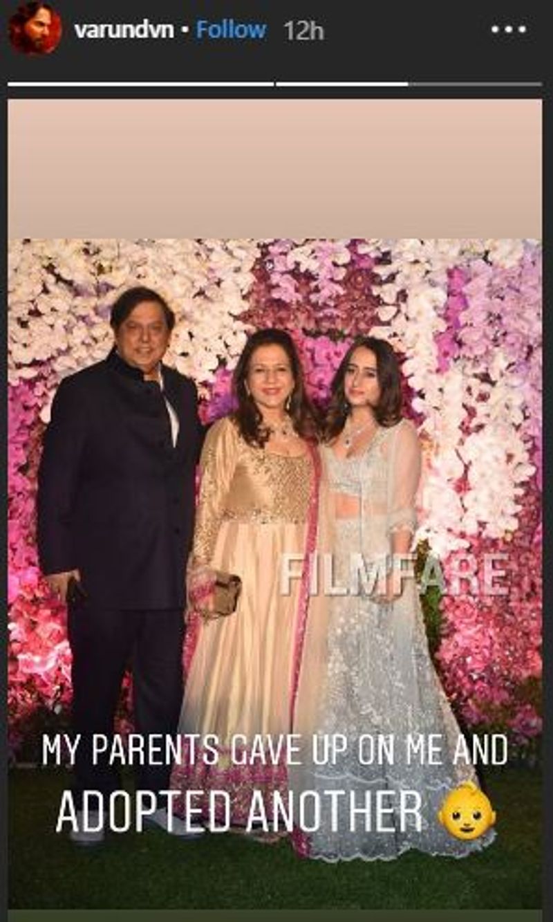 वहीं वरुण धवन ने भी अपने इंस्टाग्राम पर तीनों की तस्वीर शेयर की और फनी अंदाज में लिखा- “मेरे माता-पिता मुझसे परेशान आ चुके हैं, इसलिए लगता है उन्होंने दूसरा बच्चा अडॉप्ट कर लिया है।“