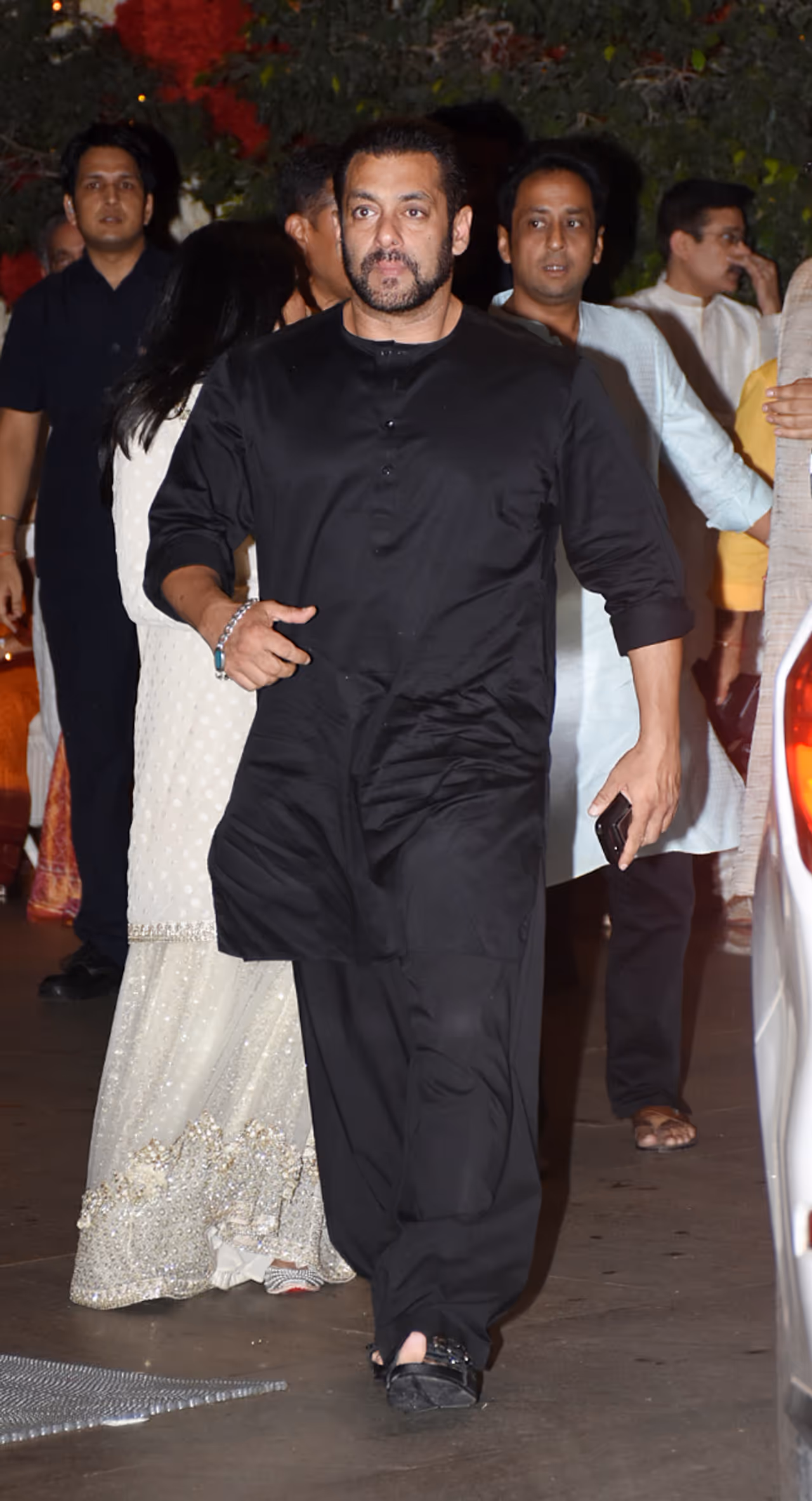 सलमान खान ब्लैक कुर्ते पायजामे में कटरीना कैफ के साथ पहुंचे थे।