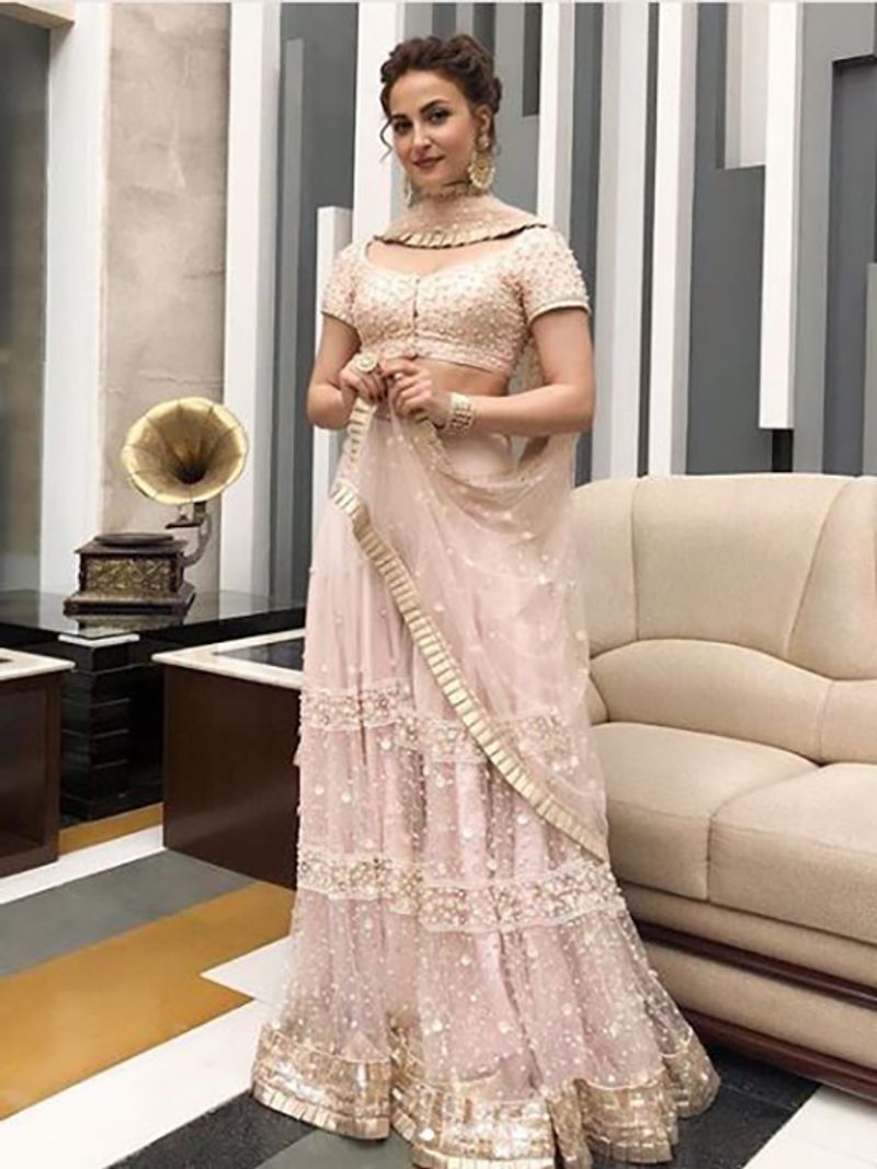 एली ने हलके गुलाबी रंग का शूट पहना रखा है जो कि उनपर खूब जंच रहा है।