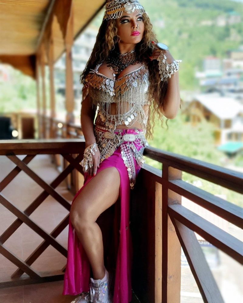 राखी की तस्वीरों में देखा जा सकता है कि उन्होंने डांस कॉस्ट्यूम पहना हुआ है। ड्रेस के साथ राखी ने बहुत हेवी सिल्वर ज्वेलरी पहनी हुई है। फैंस राखी के इस लुक को पसंद भी कर रहे हैं तो वहीं कुछ लोग भद्दे कमेंट करने में पीछे नहीं हैं।