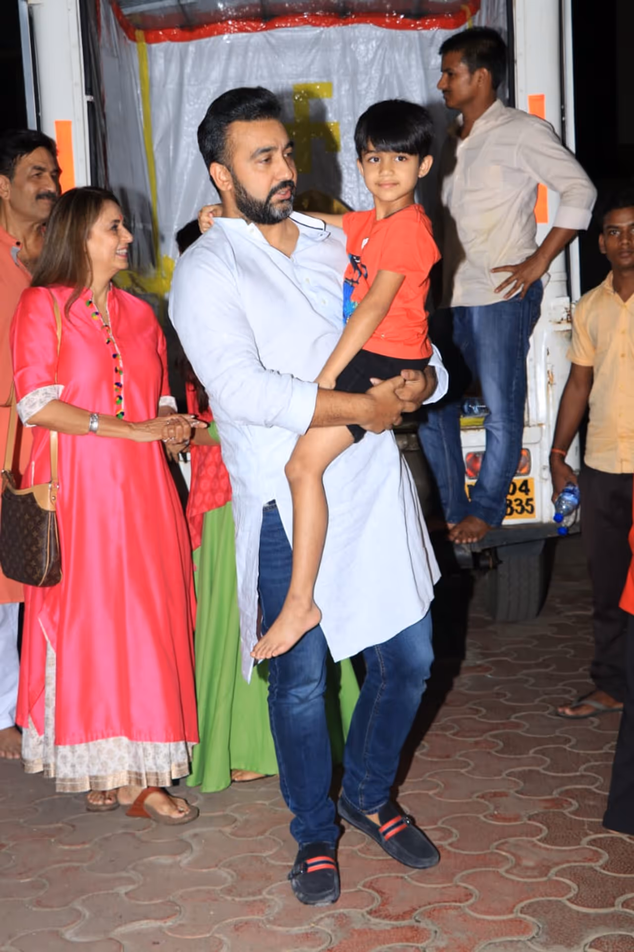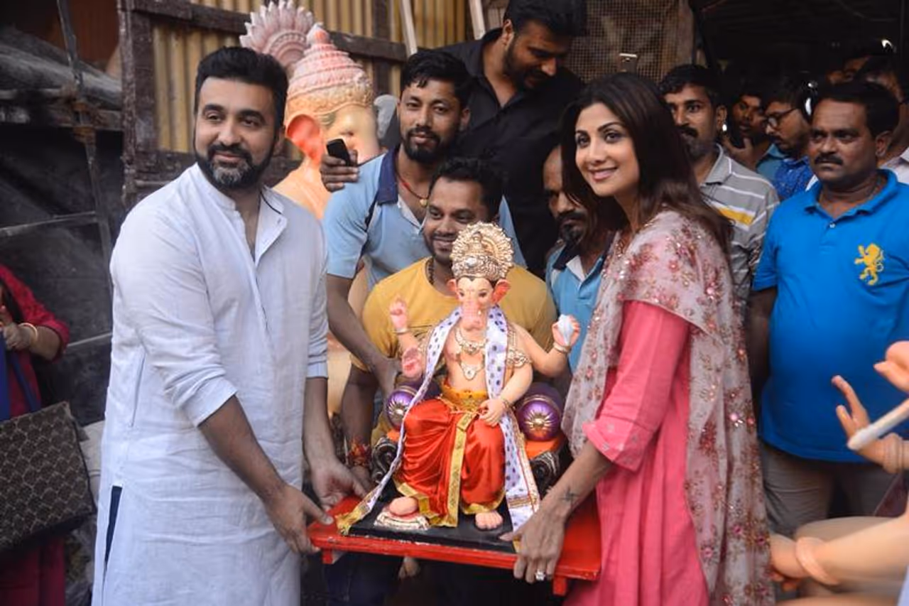 शिल्पा ने गणेश जी के घर में पधारने से पहले पूजा अर्चना करवाई, शिल्पा के उनके पति राज कुंद्रा और उनके बेटे भी मौजूद रहे।