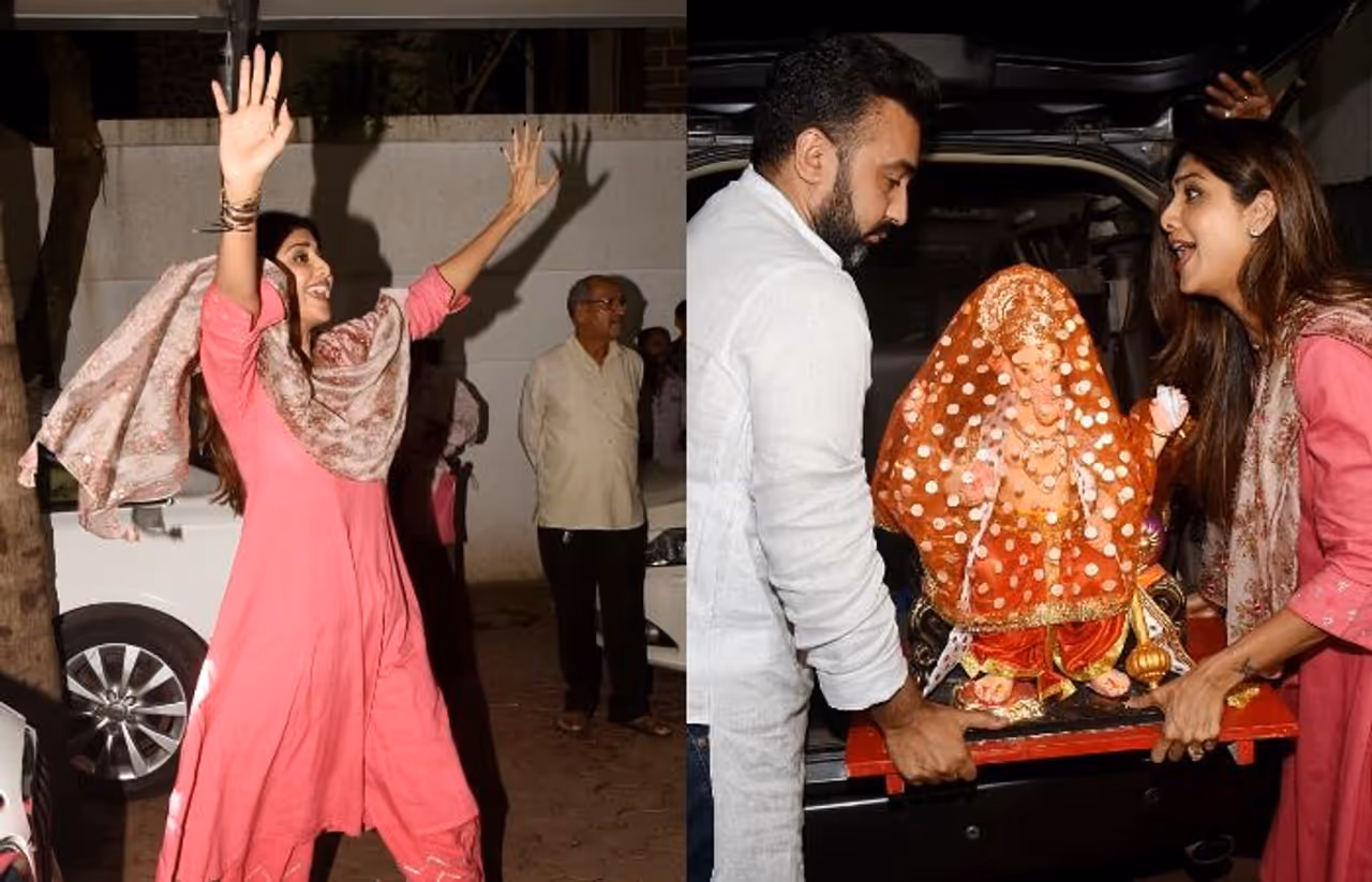 बॉलीवुड अभिनेत्री शिल्पा शेट्टी खास अंदाज में गणपति बप्पा का स्वागत करती दिखीं, देखे तस्वीरें