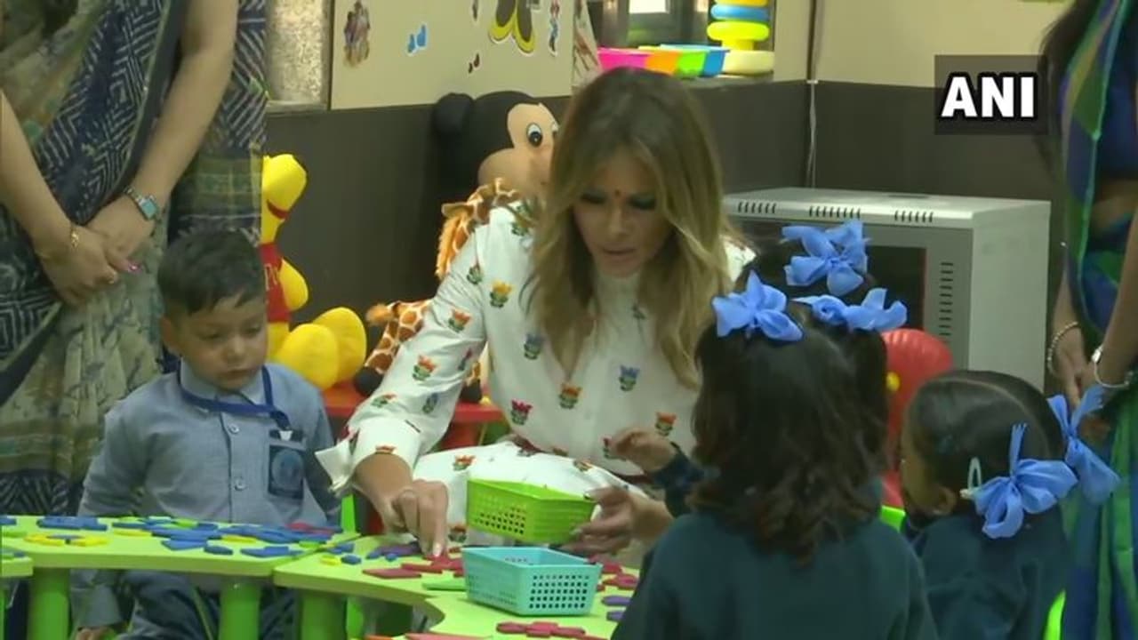 दिल्ली: कुछ इस तरह मिली ट्रम्प की पत्नी सरकारी स्कूल के नन्हे बच्चो से