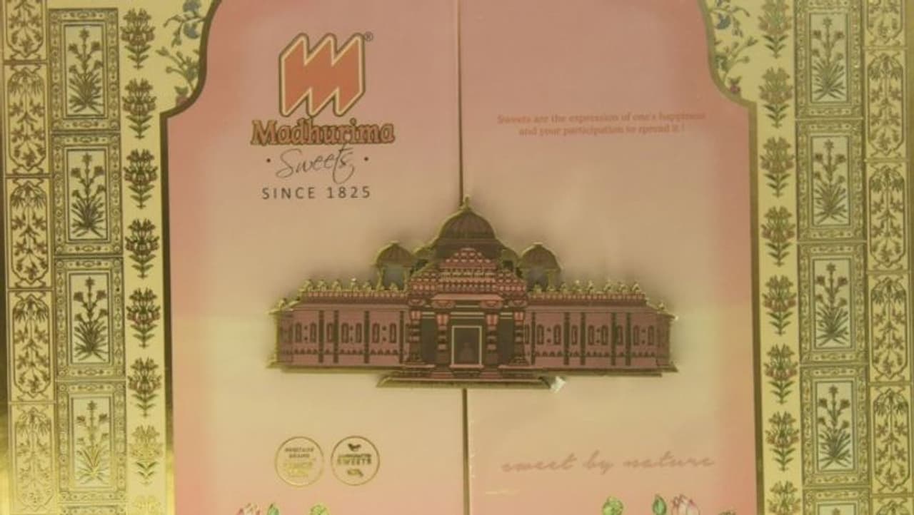 मिठाइयों को भगवान राम के नाम के रैपर में पैक किया जा रहा है। ड्राई फ्रूट के डिब्बों पर मंदिर और भगवान राम की प्रतिमा से सजावट की गयी है।
