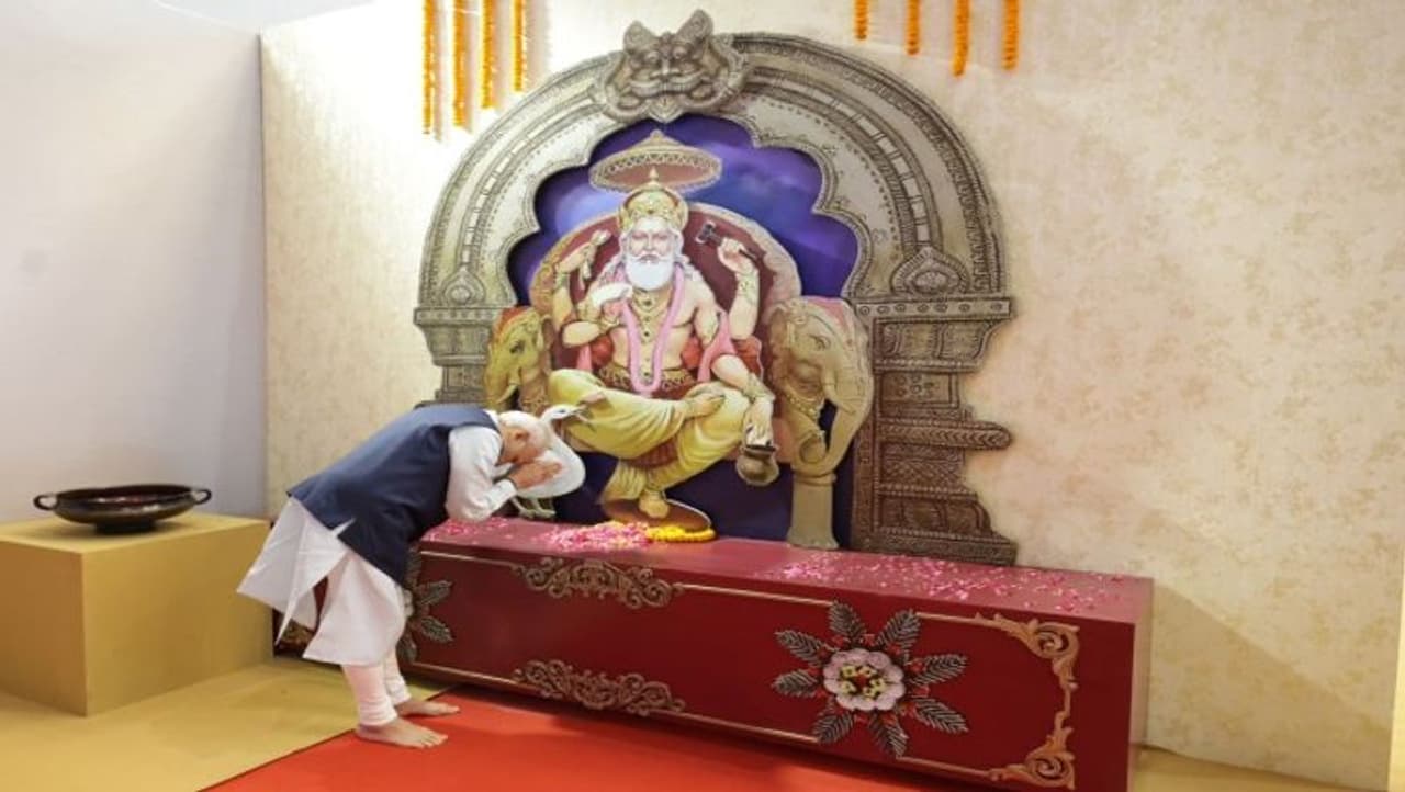 पीएम मोदी ने भगवान विश्वकर्मा की पूजा की और उन्हें झुककर प्रणाम किया। विश्वकर्मा योजना से पारपंरिक व्यवसायों से जुड़े लोगों को लाभ मिलेगा।