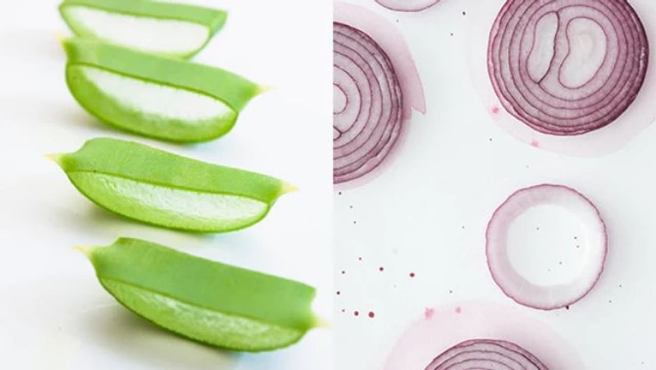 एलोवेरा जेल और प्याज का रस (Aloevera Gel And Onion Juice)