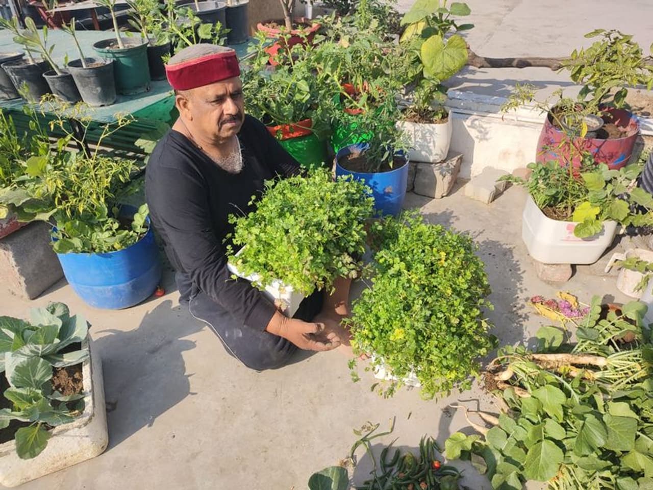 सब्जियों की देखभाल के बारे में वह कहते हैं सुबह-शाम पानी के अलावा खाद बदलना पड़ता है, दवाएं डालना होता है। कीट पतंगे से पेड़ पौधों को बचाना क्योंकि जहां पेड़ पौधे ज्यादा होते हैं वहां कीट पतंगे कीड़े, मकोड़े ज्यादा होते हैं इसलिए इन सब का ध्यान रखना होता है। घर में 600 से 700 गमले हैं। गर्मी के दिनों में दो टाइम पानी डालना होता है जाड़े के दिनों में एक टाइम। लेकिन पानी डालते डालते डेढ़ से 2 घंटा लग जाता है। बहुत समय देना होता है तब आपको इतना सुखद फल मिलता है। काम से फारिग होकर वीके पांडेय का पूरा ध्यान अपने घर के गमले पर ही रहता है।