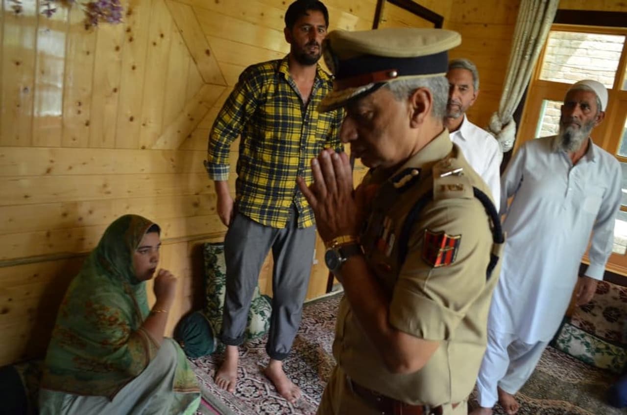 जम्मू-कश्मीर पुलिस के डीपी एसपी वैद ने शनिवार को शहीद इंस्पेक्टर मोहम्मद अशरफ डार के परिजनों से मुलाकात की।