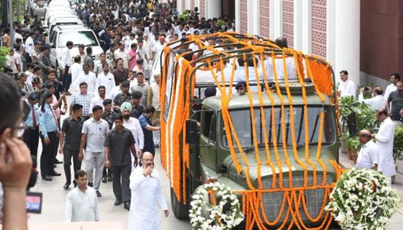 आज भाजपा मुख्यालय में कई मंत्रियों और नेताओं ने अरुण जेटली को दी श्रद्धांजलि। उनके पार्थिव शरीर को फूलों से सजी तोप गाड़ी में अंतिम संस्कार स्थल पर ले जाया गया। इससे पहले भाजपा मुख्यालय में सैकड़ों लोगों ने कतार में लगकर जेटली को अपनी श्रद्धांजलि अर्पित की। भाजपा कार्यालय में ‘जब तक सूरज चांद रहेगा जेटली तेरा नाम रहेगा’ जैसे नारे गूंजे।
