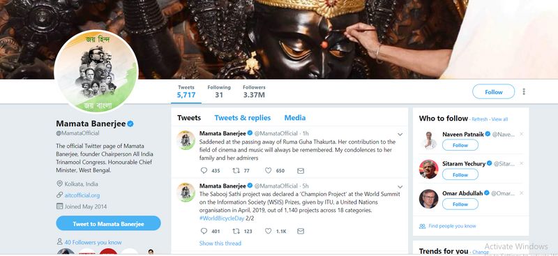 यही नहीं ममता बनर्जी ने अपने फेसबुक और ट्विटर अकाउंट पर अपनी प्रोफाइल पिक्चर भी बदल दी है।