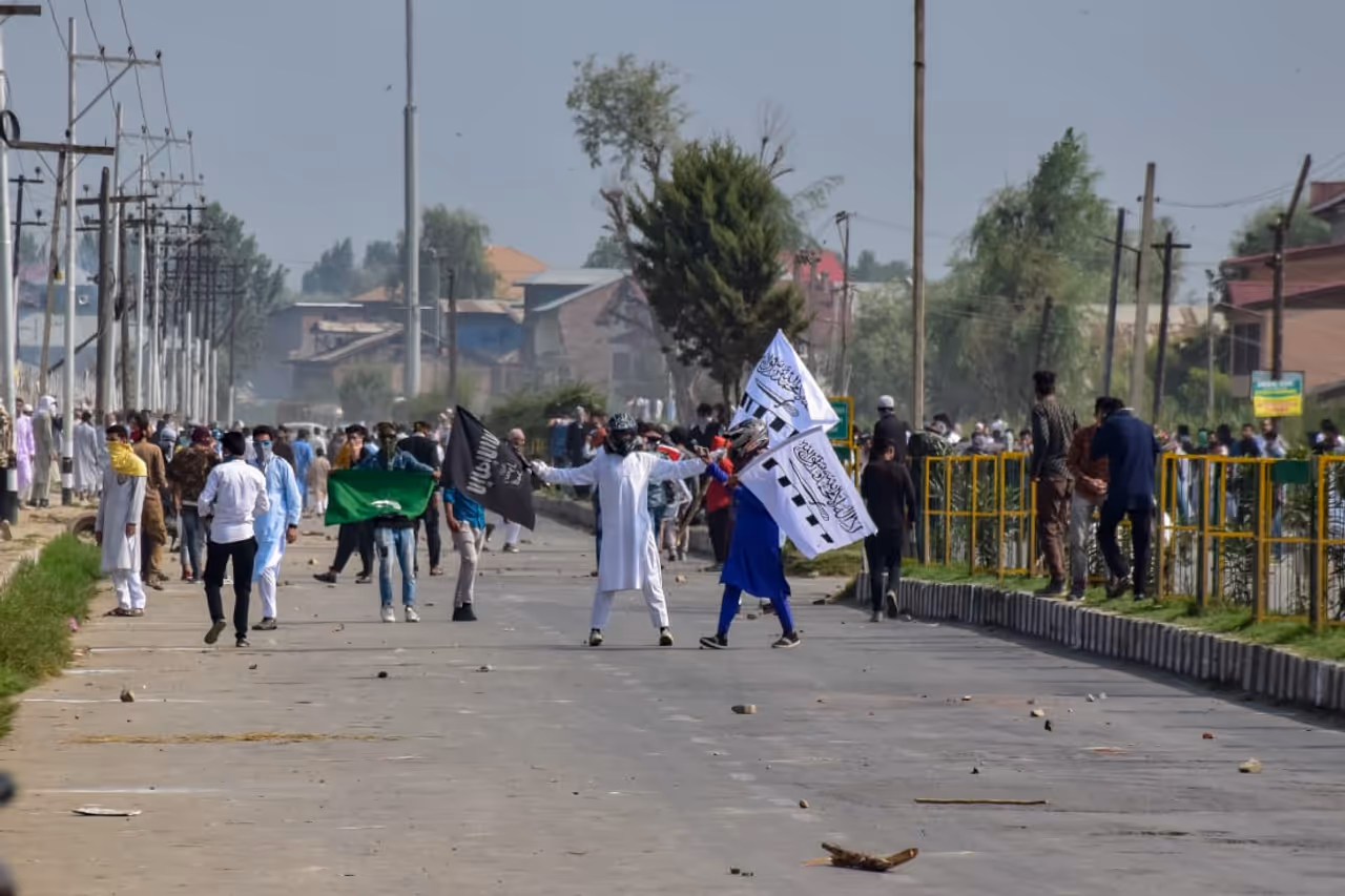 जम्मू कश्मीर के श्रीनगर में उस वक्त भारी हिंसा भड़क उठी जब पत्थरबाजों ने पाकिस्तान और आईएसआईएस के झंडे लहराए। प्रदर्शनकारी ईद की नमाज के बाद श्रीनगर के ईदगाह मैदान में तैनात पुलिसकर्मियों से भिड़ गए। इस दौरान देश विरोधी नारे लगाए गए। भीड़ को तितर-बितर करने का प्रयास कर रहे सुरक्षाबलों पर पत्थर भी बरसाए गए। हालात बिगड़ते देख सुरक्षाबलों को आंसू गैस के गोले दागने पड़े। विरोध में पत्थरबाजों ने पाकिस्तान और आईएसआईएस के झंडे भी लहराए। अनंतनाग के जंगलात मंडी, सोपोर में जामिया मस्जिद के पास भी इस तरह की घटनाएं हुई हैं।