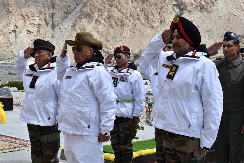 रक्षा मंत्री ने कहा कि 1,100 से अधिक जवान सियाचिन ग्लेशियर की रक्षा करते हुए सर्वोच्च बलिदान दे चुके हैं। उन्होंने कहा, ‘राष्ट्र सदैव उनकी सेवा और बलिदान का ऋणी रहेगा।’रक्षा मंत्री के तौर पर दिल्ली के बाहर अपने पहले दौरे में सिंह ने क्षेत्र के शीर्ष फील्ड कमांडरों के साथ सियाचिन में सुरक्षा तैयारियों का जायजा भी लिया।