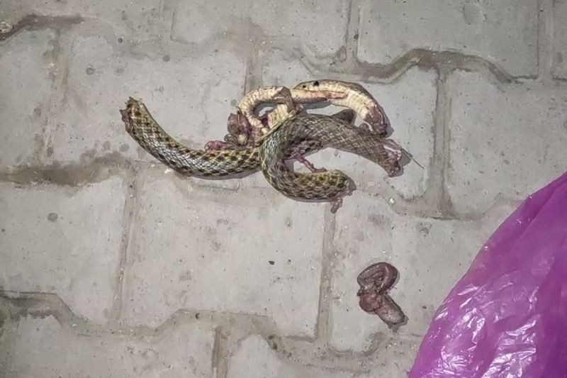 हुआ ये कि उत्तर प्रदेश के एटा जिले के कोतवाली देहात छेत्र में असरौली गाँव मे राजकुमार के घर एक शादी समारोह था। शादी समारोह में नागिन वाला गाना बज रहा था कि इसी बीच एक जहरीला सांप प्रकट हो गया और नाचने लगा। साँप को देखकर शादी समारोह में भगदड़ मच गई और लोग जान बचाकर इधर उधर भागने लगे। इसी बीच राजकुमार नाम का युवक जिसके घर मे शादी थी आया और उसने शराब के नशे में सांप पर हमला बोल दिया। उसने सबके सामने सांप को कई बार डसा और सांप को पकड़कर उसके अपने दांतों से काटकर चार टुकड़े कर दिए। युवक की यह हरकत देख सभी लोग दंग रह गए।
