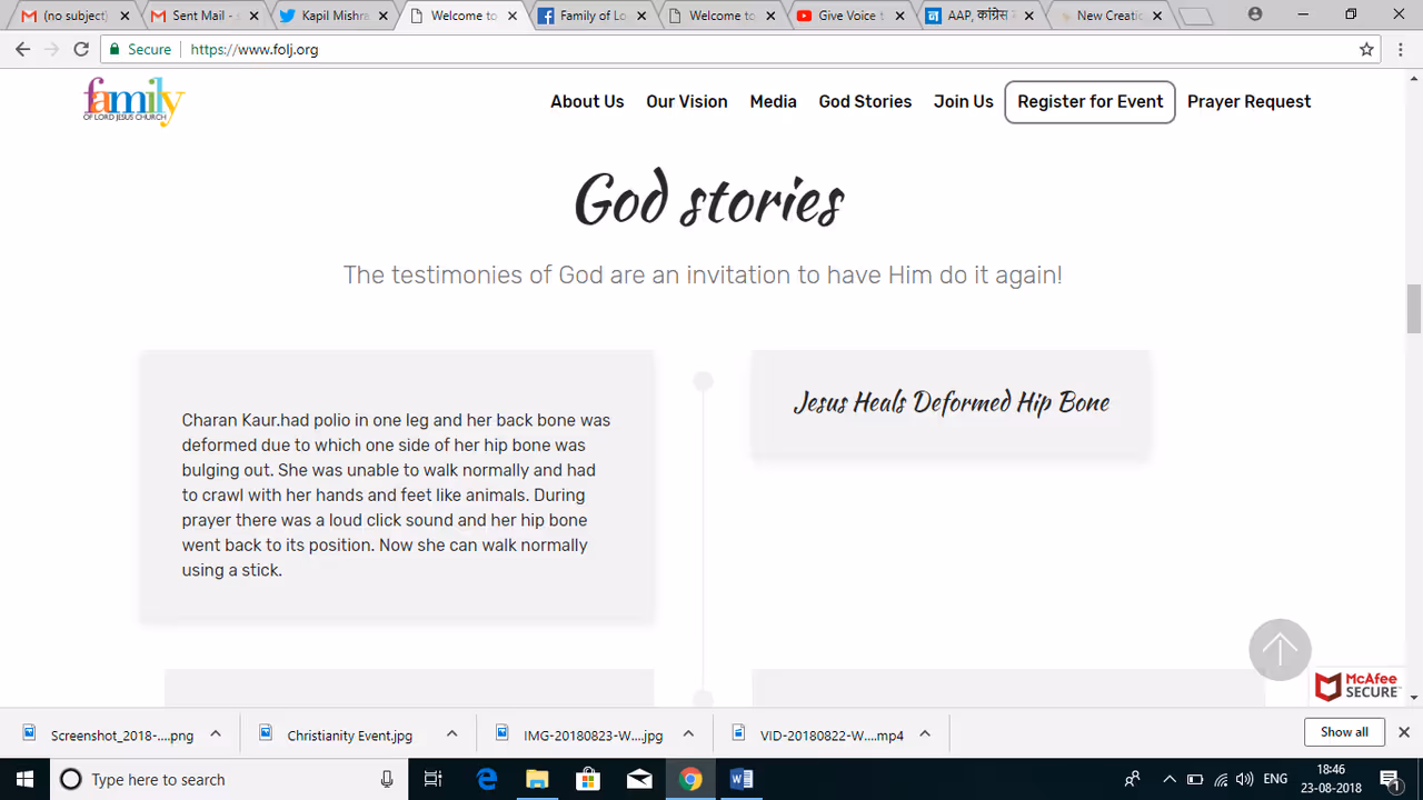एफओएलजे की वेबसाइट पर दावा किया गया है कि दुर्घटना में लगी चोटों के साथ-साथ कैंसर और पोलियो भी ईसाई बनने पर ठीक हो जाता है।