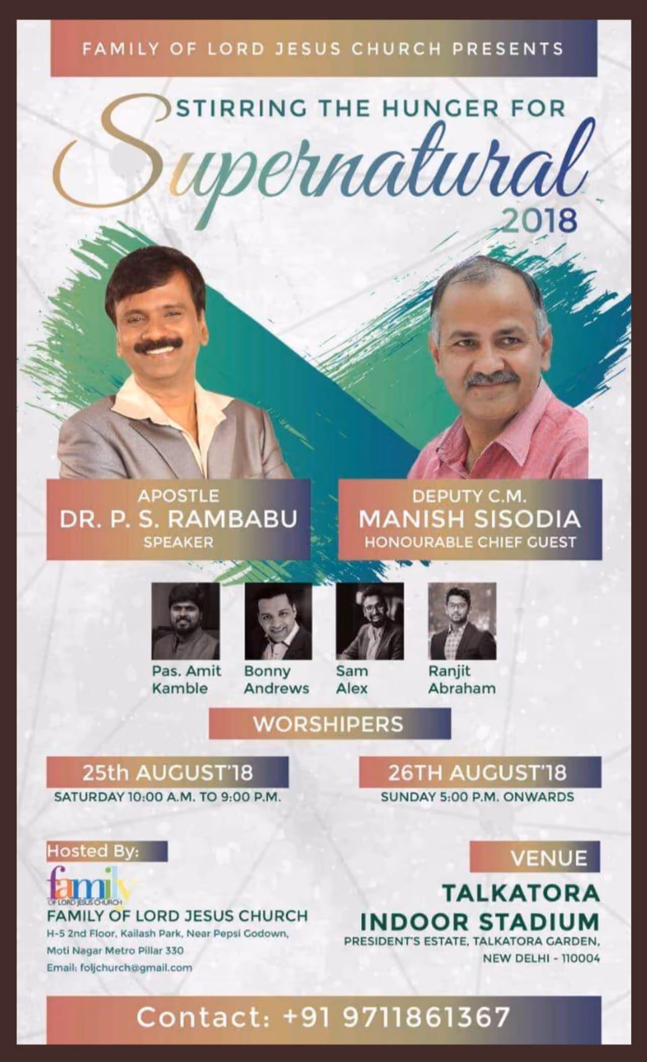 धर्म परिवर्तन को अपना मुख्य एजेंडा बताने वाला एक ईसाई संगठन दिल्ली के तालकटोरा स्टेडियम में 25-26 को एक कार्यक्रम करने जा रहा है। खास बात यह है कि दिल्ली के उपमुख्यमंत्री और आम आदमी पार्टी (आप) के शीर्ष नेता मनीष सिसोदिया इसके मुख्य अतिथि हैं।