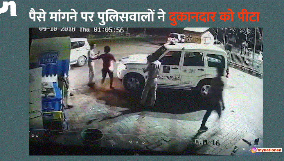 फरीदाबाद में नहीं थम रही हरियाणा पुलिस की गुंडागर्दी, जूस के 40 रुपये मांगने पर पुलिसकर्मियों ने की दुकानदार की जमकर पिटाई, सीसीटिवी में कैद हुए।