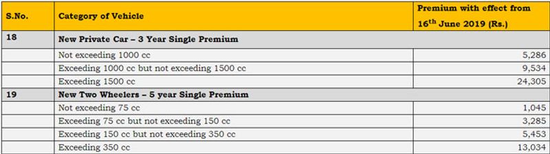 दीर्घकालिक एकल प्रीमियम दरों में कोई बदलाव नहीं किया गया है। कारों के मामले में, दीर्घकालिक प्रीमियम की अवधि तीन साल और दोपहिया वाहनों के लिए यह अवधि पांच साल है।