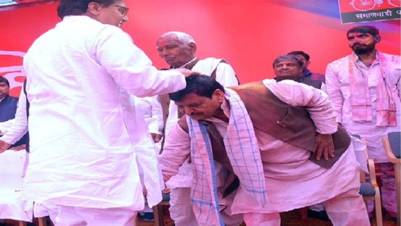 लखनऊ। उत्तर प्रदेश में फिर मुलायम परिवार में एकजुट दिख रही है। कभी एक दूसरे का चेहरा देखने से परहेज करने वाले समाजवादी पार्टी के अध्यक्ष अखिलेश यादव और सपा के बागी विधायक शिवपाल सिंह यादव एक बार फिर मंच पर दिखे। शिवपाल ने अपने विरोधी रामगोपाल यादव के भी पैर छूकर कुछ नरम होने के संकेत दिए। वहीं अखिलेश यादव ने शिवपाल सिंह यादव के पैर छूकर नए सियासी रिश्तों के बनने के संकेत दिए।