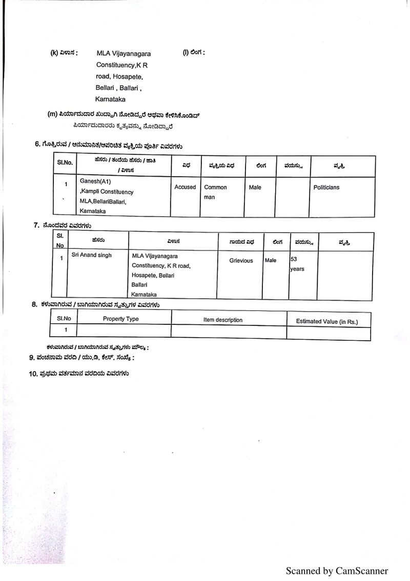 अपोलो अस्पताल में भर्ती होसपेट से विधायक आनंद सिंह की तस्वीर हुई वायरल, आंख और चेहरे पर गंभीर चोटों के निशान। अभी तक झगड़े से इनकार कर रही पार्टी की किरकिरी।