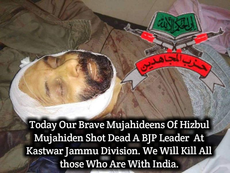 इस बीच, 'माय नेशन' के हाथ लगे पोस्टर्स इस तरफ इशारा करते हैं कि भाजपा नेताओं की हत्या में आतंकी संगठन हिजबुल मुजाहिदीन का हाथ है।
