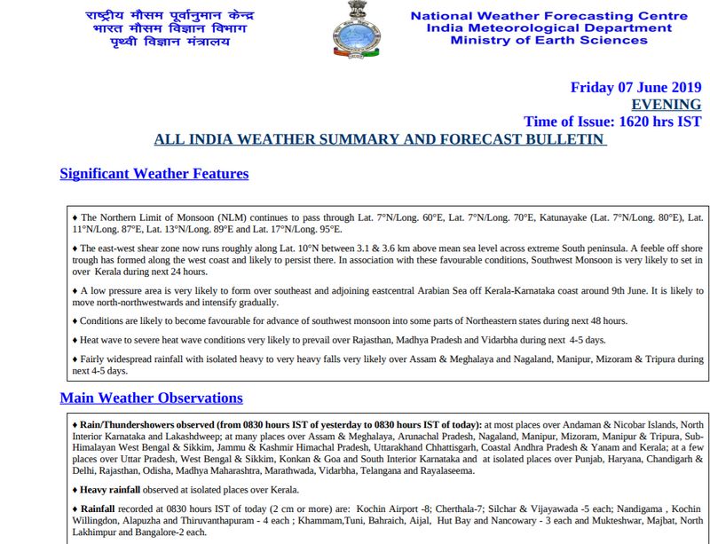 मौसम विभाग के मुताबिक कल केरल में मॉनसून पहुंच जाएगा। इसके बाद अगले दो दिनों में पूर्वोत्तर भारत के त्रिपुरा, मेघालय, सिक्कम, मणिपुर, असम जैसे राज्यों में इसका असर दिखने लगेगा।