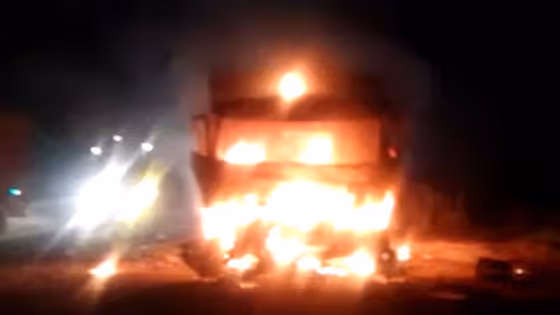 भिण्ड में NH 92 पर राह चलते ट्रक मे अचानक आग लग गई। जिसकी वजह से अफरा तफरी मच गई। चालक ने किसी तरह जलते ट्रक से कूदकर अपनी जान बचाई।