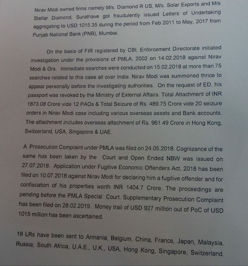 बैंकों का हजारो करोड़ रूपया डकार कर विदेश भागे नीरव मोदी को भारत लाकर सजा दिलाने के लिए ठोस कानूनी प्रक्रिया शुरु की जा चुकी है।