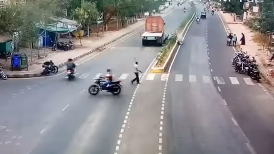 झाबुआ—मध्य प्रदेश के झाबुआ में रोंगटे खड़े कर देने वाला सड़क हादसे का वीडियों सामने आया है। भुरू भाबोर नाम का युवक डिवाइडर से टकराकर ट्राले में आते-आते बचा। हादसे में भुरु भाबर को गंभीर चोट आई है उसे इलाज के लिए दाहोद रेफर किया गया है। घटना झाबुआ के डीआरपी लाइन चौराहे की है।