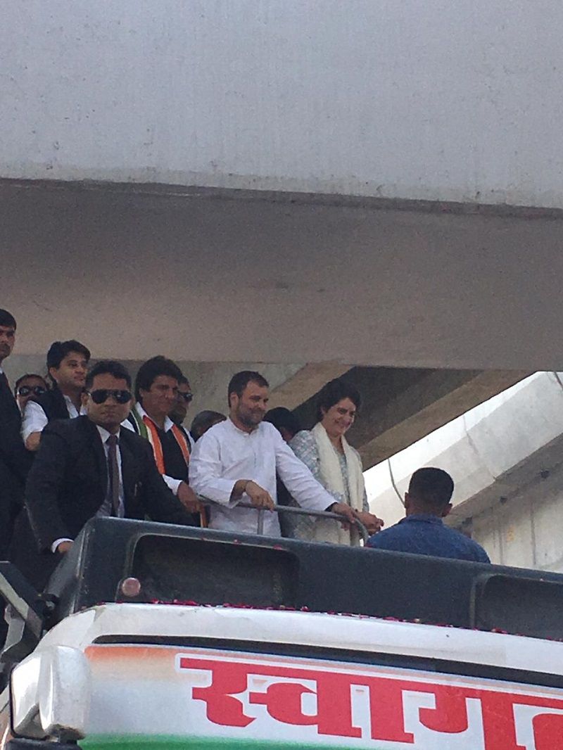 प्रियंका के आज के रोड शो के दौरान कांग्रेस नेता व कार्यकर्ता काफी उत्साह में नजर आ रहे हैं। कांग्रेस के ज्यादातर बड़े नेता कल ही लखनऊ पहुंच गए थे और कुछ आज पहुंचे प्रियंका गांधी के स्वागत के लिए शहर भर मे पोस्टर लगाए गए हैं और इन पोस्टरों में राफेल मुद्दे के भी पोस्टर लगाए हैं। चौधरी चरण सिहं एयरपोर्ट से शुरू हुआ रोड़ शो शाम चार बजे प्रदेश कांग्रेस मुख्यालय पर खत्म होगा। प्रियंका का रोड शो के दौरान करीब 37 जगहों पर उनका स्वागत किया जाएगा। राहुल गांधी, प्रियंका गांधी वाड्रा, ज्योतिरादित्य सिंधिया व अन्य कांग्रेस नेता बस पर सवार हैं, जिसका नेतृत्व प्रियंका कर रही हैं।