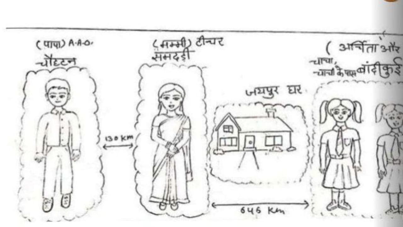 दोनों बहनों ने एक ड्राइंग भी बनाई है। जिसमें अपने माता-पिता और घर की ड्राइंग बनाई है। फिर खुद की भी फोटो बनाई है। ड्राइंग में लिखा है कि हम दोनो बहने अपने मां बाप के साथ रहना चाहते हैं। दोनों बहनों के इस इमोशनल लेटर को सोशल मीडिया पर खूब वायरल किया जा रहा है। हालाकि अभी तक पीएम या सीएम की तरफ से इन बच्चियों की गुजारिश पर कोई क्रिया प्रतिक्रिया नहीं आई है। उनके मा बाप का तबादला जयपुर या दौसा में नहीं हो पाया है। जिससे दोनों बहने मायूस है।