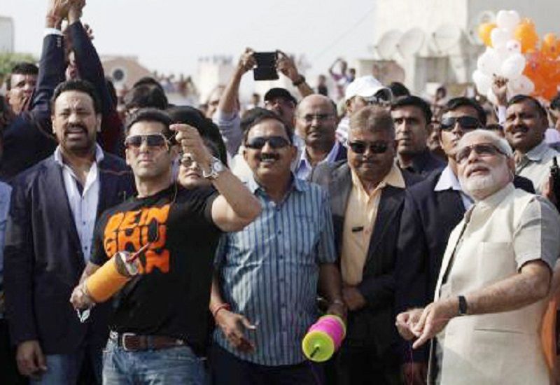 उसके साथ ही गुजरात में होने पंतग उत्सव में पहले सलमान खान नरेन्द्र मोदी के साथ कई बार हिस्सा ले चुके हैं। हालांकि उन्होंने उनके पक्ष में कोई राजनैतिक रैली नहीं की थी। कुछ साल पहले मोदी से मिलने पर सलमान खान ने कहा था कि मोदी को कोर्ट से क्लीन चिट मिल चुकी है तो बात यहीं खत्म हो जाती है। हालांकि उसी दौरान ये भी चर्चा थी कि सलमान खान के पिता सलीम खान गुजरात से चुनाव लड़ सकते हैं। लेकिन सलमान ने इस अफवाहों को खारिज किया था। हालांकि गौरतलब है कि सलमान के पिता का नरेंद्र मोदी से बेहतर रिश्ता रहा है। वह कई बार मोदी से मिल चुके हैं।