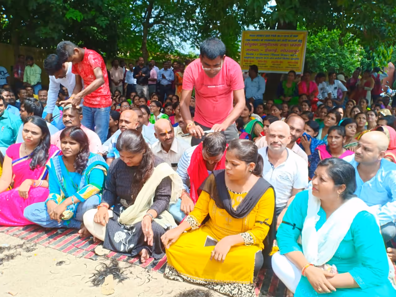 अपनी मांग को लेकर महिला टीचरों ने अपनी चोटी कटवा कर विरोध जताया। उनका कहना है कि चोटी औरत का श्रृंगार होता है और वे अपना श्रृंगार उतारकर विरोध जता रही हैं।