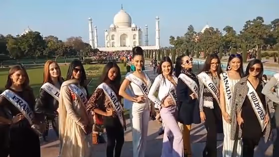ताज नगरी आगरा में दुनिया भर की सुंदरियों का जमावड़ा हुआ। यहां अमेरिका, इंग्लैंड, कनाडा, न्यूजीलैंड की सौंदर्य प्रतियोगिता की विजेता महिलाएं पहुंचीं। उन्होंने करीब एक घंटे तक ताजमहल का दीदार किया।