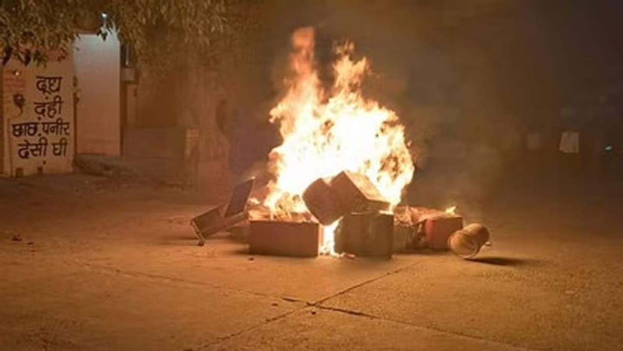 नाराज लोगों ने दुकान में की तोड़फोड़, आगजनी