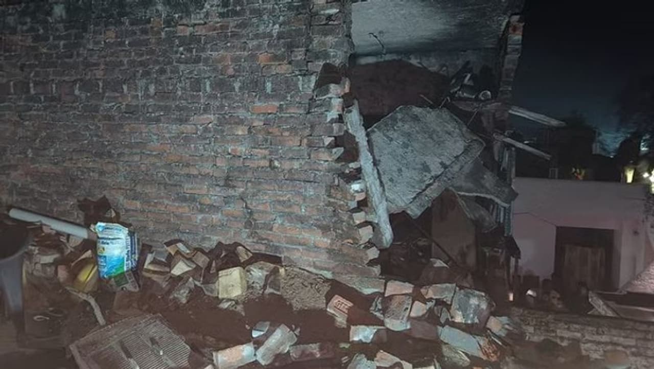 दो सिलेंडर फटे, घर की दीवारों में आ गईं दरारे, उड़ गई छत