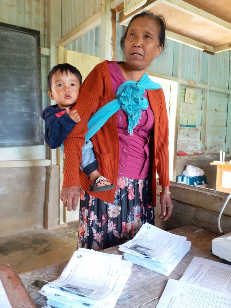 उत्तर पूर्व की एक महिला मतदाता अपने दुधमुंहे बच्चे के साथ वोट देती हुई दिखी