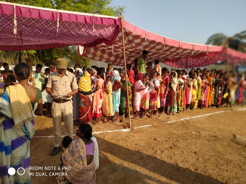 उत्तर पूर्व के एक बूथ पर मतदान के लिए लगी हुई महिलाओं की कतार