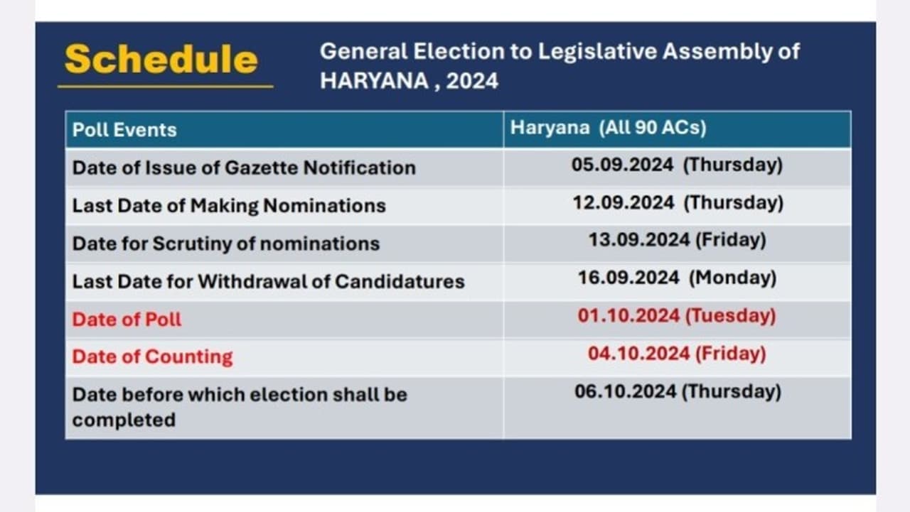 हरियाणा के इलेक्शन प्रोग्राम की इंप्वार्टेंट डेट
