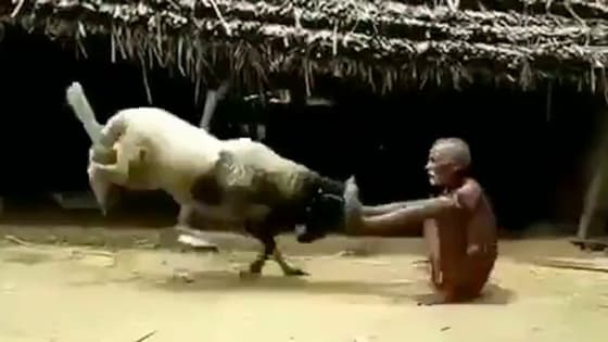 यह वीडियो हमें अज्ञात स्रोतों से प्राप्त हुआ है। इसमें भारत के ग्रामीण इलाके के एक बुजुर्ग अपने पालतू मेढ़े को खुद पर हमला करने के लिए उकसाते हुए दिख रहे हैं। हट्टा कट्टा मेढ़ा उन्हें जबरदस्त टक्कर मारता हैं लेकिन उन्हें कुछ भी नहीं होता।